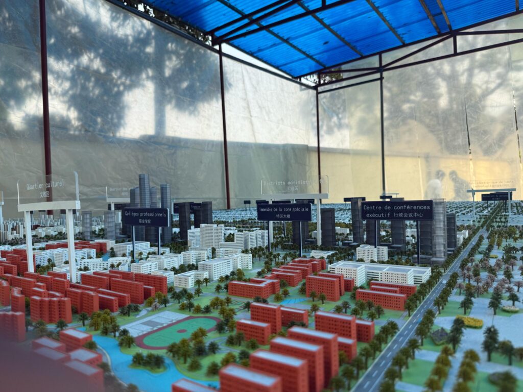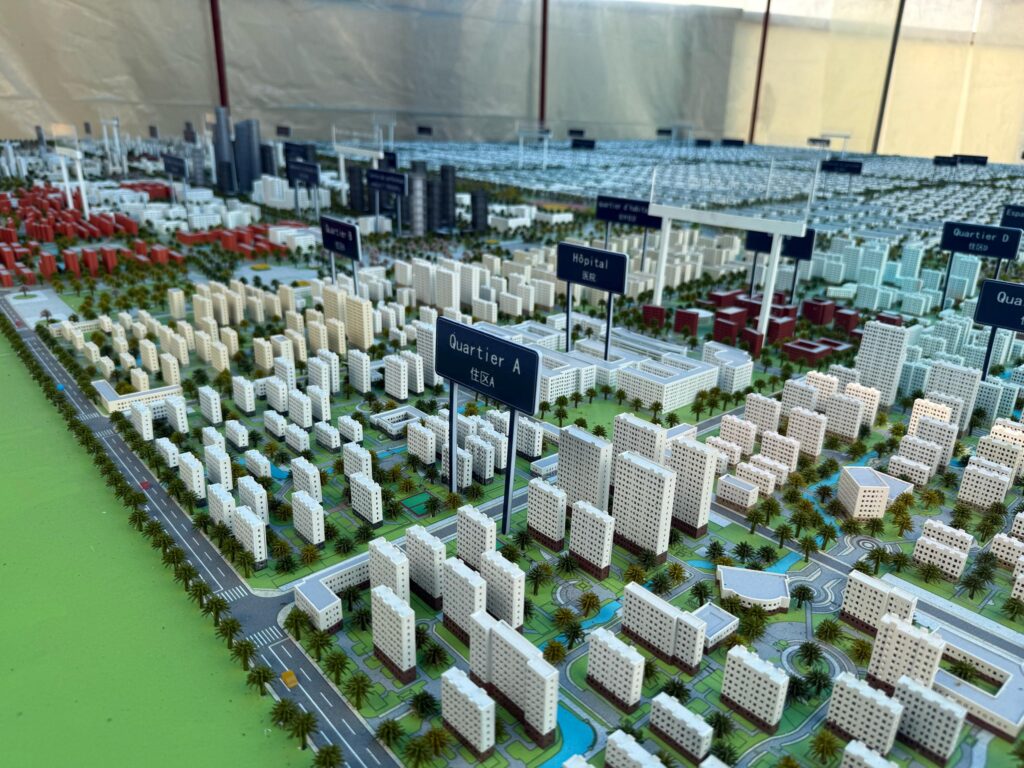D’une dimension impressionnante de 6 mètres sur 5, cette maquette représente une superficie réelle de 7.500 hectares destinée à accueillir la future Cité Industrielle, située dans la zone industrielle prévue dans le cadre du projet d’extension de la capitale vers sa partie Est.