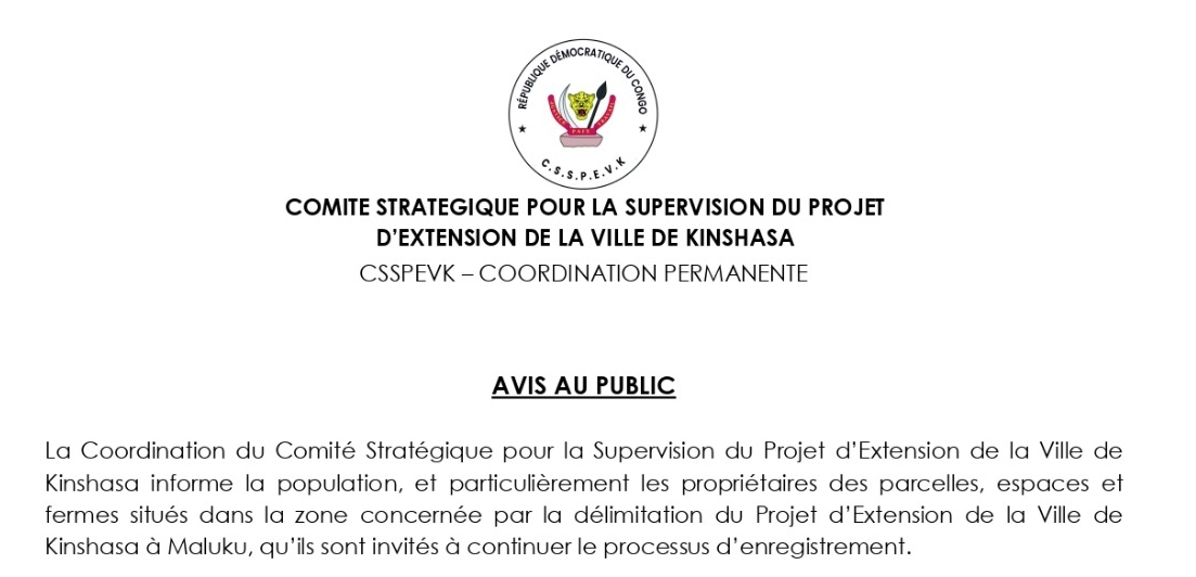 > Nouvelles > Actualités > Projet d’extension de Kinshasa : les propriétaires fonciers de Maluku appelés à poursuivre l’enregistrement de leurs parcelles, espaces et fermes