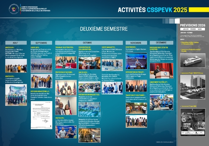 La Coordination permanente du Projet d’extension de la Ville de Kinshasa informe l’opinion publique de la publication officielle du rapport synthèse des activités menées au cours de l’année 2025. Ce document est désormais disponible sur l’ensemble de ses plateformes digitales.